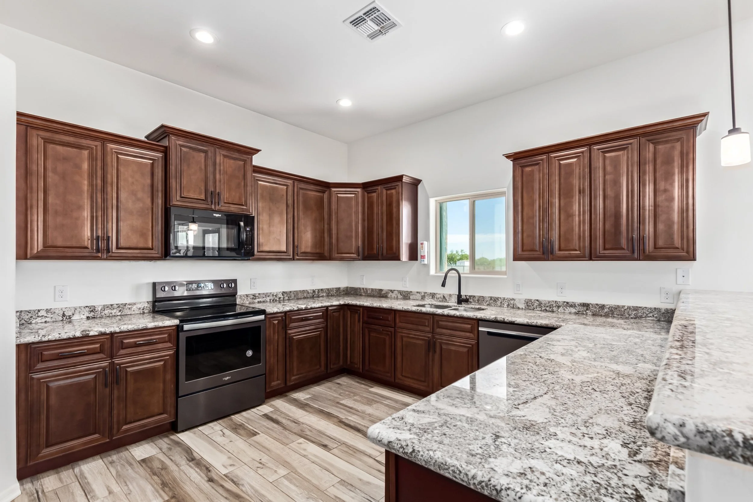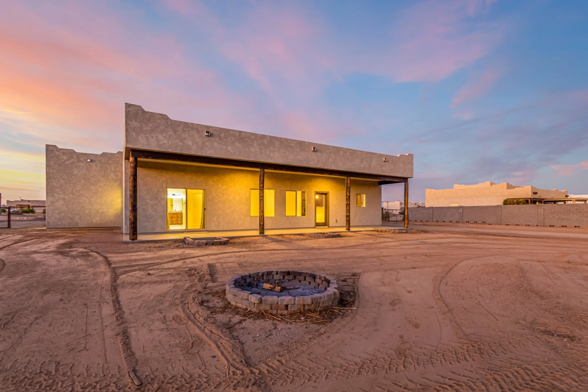 Don't wait for your new home to be built, enjoy this 2020 built home NOW! Situated on over an acre, there is plenty of space for your horses, toys, RVs, & trailers. This is the perfect place to enjoy country living in a horse friendly community conveniently located near Grand Ave, the 303, Surprise, & Wickenburg. The property is fully fenced with no-climb fencing and 2 large RV gates that will allow access for your RVs & trailers. NEW front landscape gravel, freshly graded backyard with mature trees, North/South exposure, NO HOA, & panoramic mountain views. Inside you'll find an open-concept 4 bed, 2 bath split floor plan. Beautiful wood-look tile flooring & ceiling fans throughout. Gourmet kitchen includes granite countertops, breakfast bar, walk-in pantry, pendant lighting, stainless steel appliances, sink overlooking the backyard, & ample counter/cabinet space. Off the kitchen is a spacious great room & dining area with decor niches & storage closet. Your master suite features back patio access, large walk-in closet, free standing tub, tiled walk-in shower, & dual sinks. 3 additional spacious bedrooms split from the master & a full bathroom with tiled tub/shower & dual sinks. The laundry room includes storage cabinets with granite counters. Upgraded soft-close dovetailed cabinetry throughout the home. Oversized extended 3 car garage with mini split, epoxy flooring, insulated garage doors, utility door to backyard, and extra storage space. Covered front & back patios to take in the gorgeous sunset & mountain views. Must see to appreciate the thought & detail that was put into this home. Come make it your own!