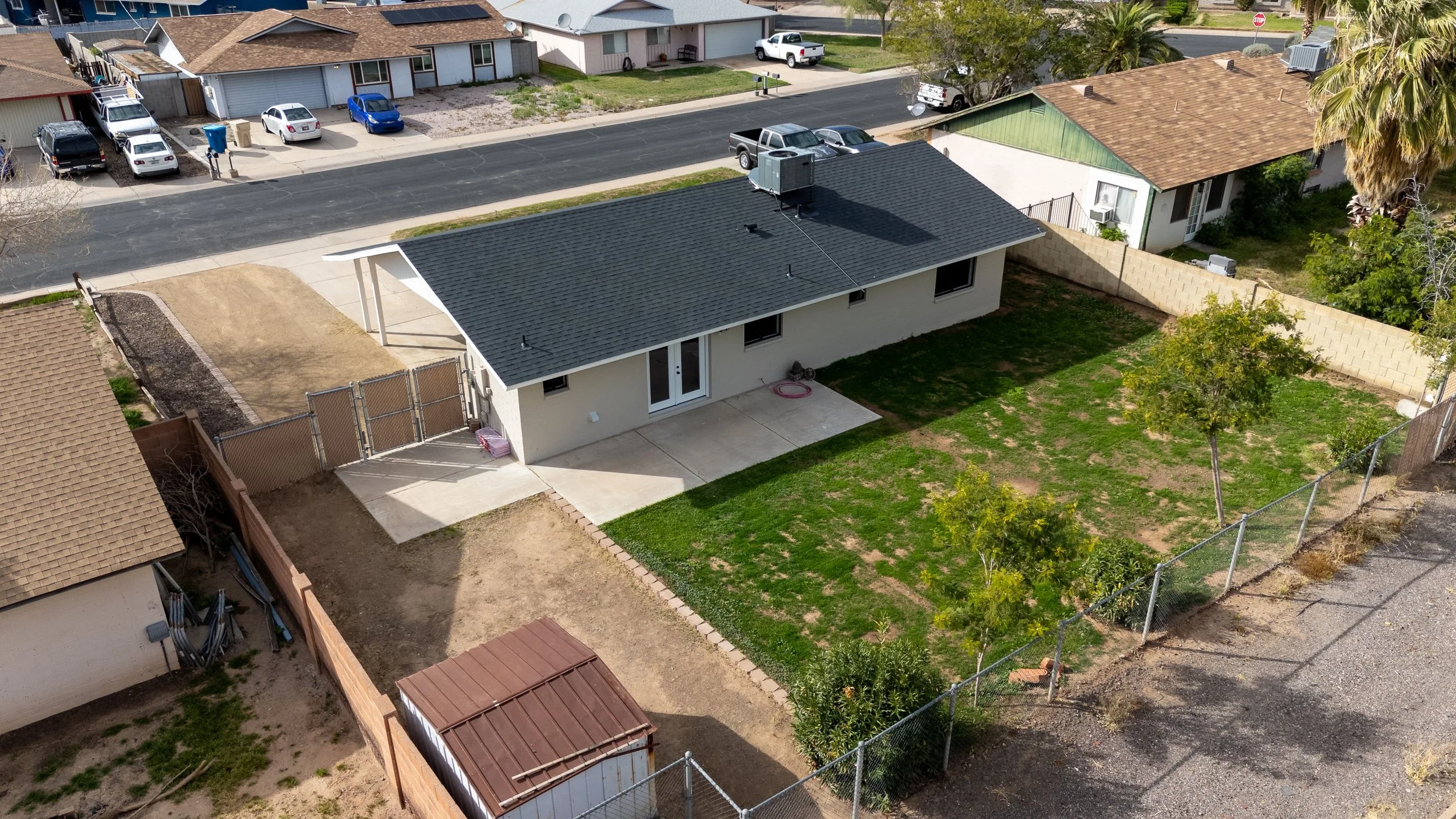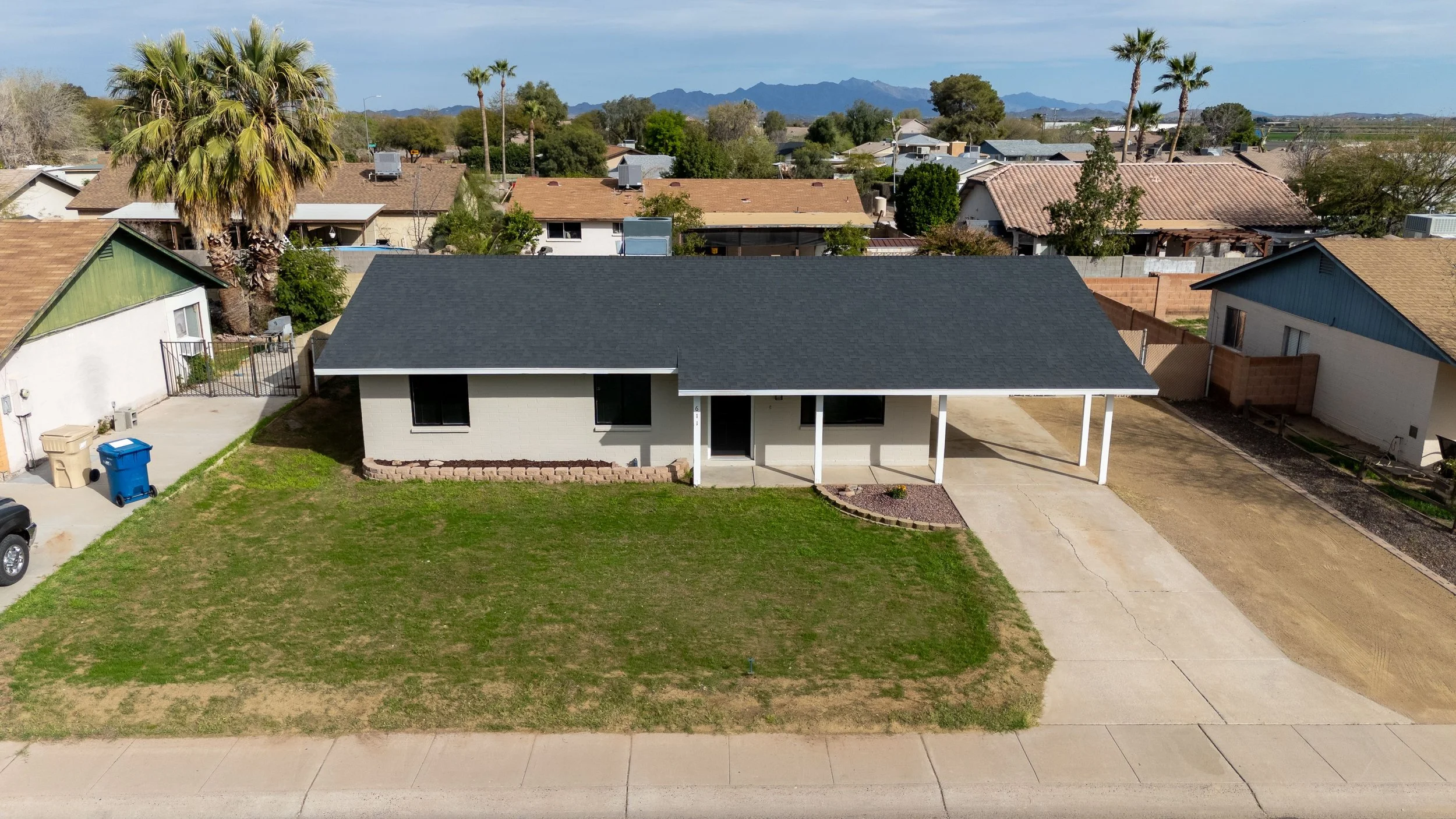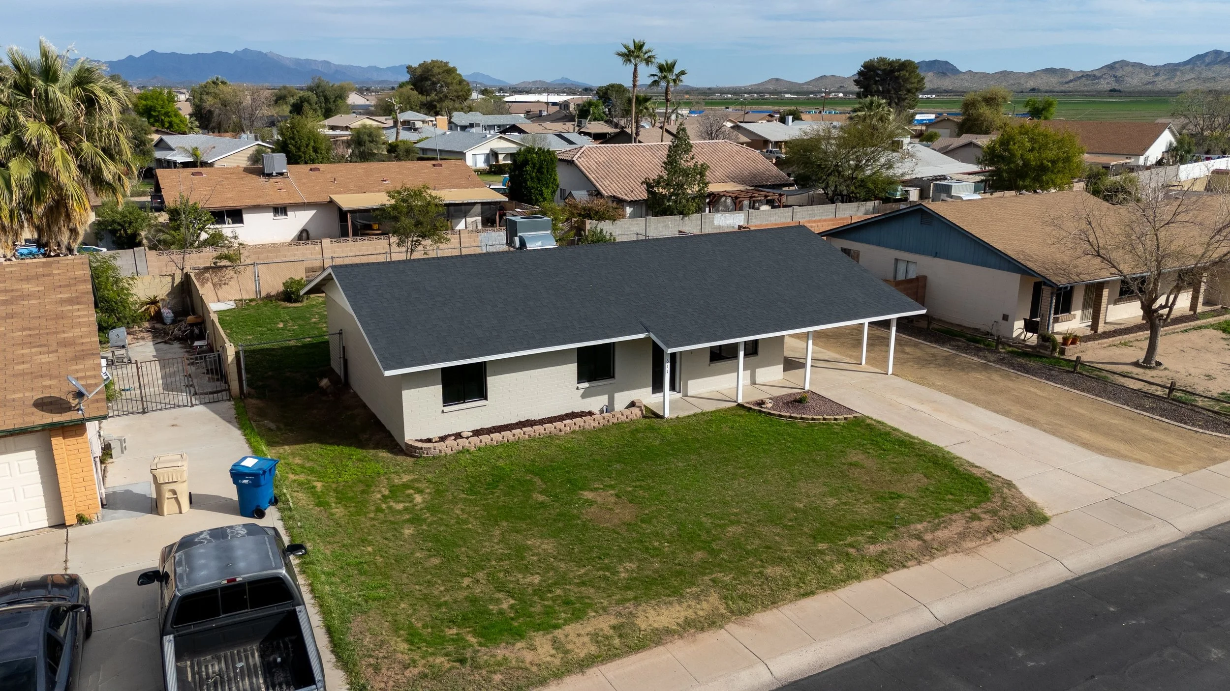 Stunning, fully remodeled 3 bed, 2 bath home on a hard-to-find irrigated lot with NO HOA in the heart of Downtown Buckeye! Completely renovated & ready to move right in! The attention to detail & designer touches are unmatched. Open floor plan featuring new wood-look LVP flooring in the living areas, beautifully tiled wet rooms, & plush carpeting in the bedrooms. All new doors, trim, hardware, lighting/plumbing fixtures, interior paint, & window coverings throughout. The kitchen truly is the heart of the home showcasing freshly painted cabinets with new hardware, beautiful quartz countertops, plenty of both counter & cabinet space, large center island with additional storage & breakfast bar, stainless steel sink & faucet, brand-new stainless steel appliances (oven has an air fryer!), recessed lighting, pantry, & French doors to the back patio. Spacious great room with large window & new ceiling fan opens to kitchen making it the perfect space for entertaining. Indoor tiled laundry room with new water heater. Your master suite boasts a beautiful en suite bathroom with new vanity, linen closet, & tiled walk-in shower with penny tile floor, stylish grey marble-look tiled walls, & luxury shower head. 2 additional nice-sized bedrooms & guest bathroom with shiplap wall, new vanity, new bathtub, & custom subway tiled walls with niche. Wireless smart thermostat for your convenience as well! The curb appeal on this one is a TEN. Exterior updates include new roof & underlayment, new exterior paint, covered front patio, decorative flower beds, covered carport with separate entry, & additional parking area with paver accent. Irrigated front & back yard with lush grass & mature landscaping, fully fenced with an RV gate, side yard with room for RV/trailer parking, & back patio. Great neighborhood close to all that Downtown Buckeye has to offer including shopping, dining, convenience stores, schools, an aquatic center, skate park, & recreational facility. Must see to appreciate!