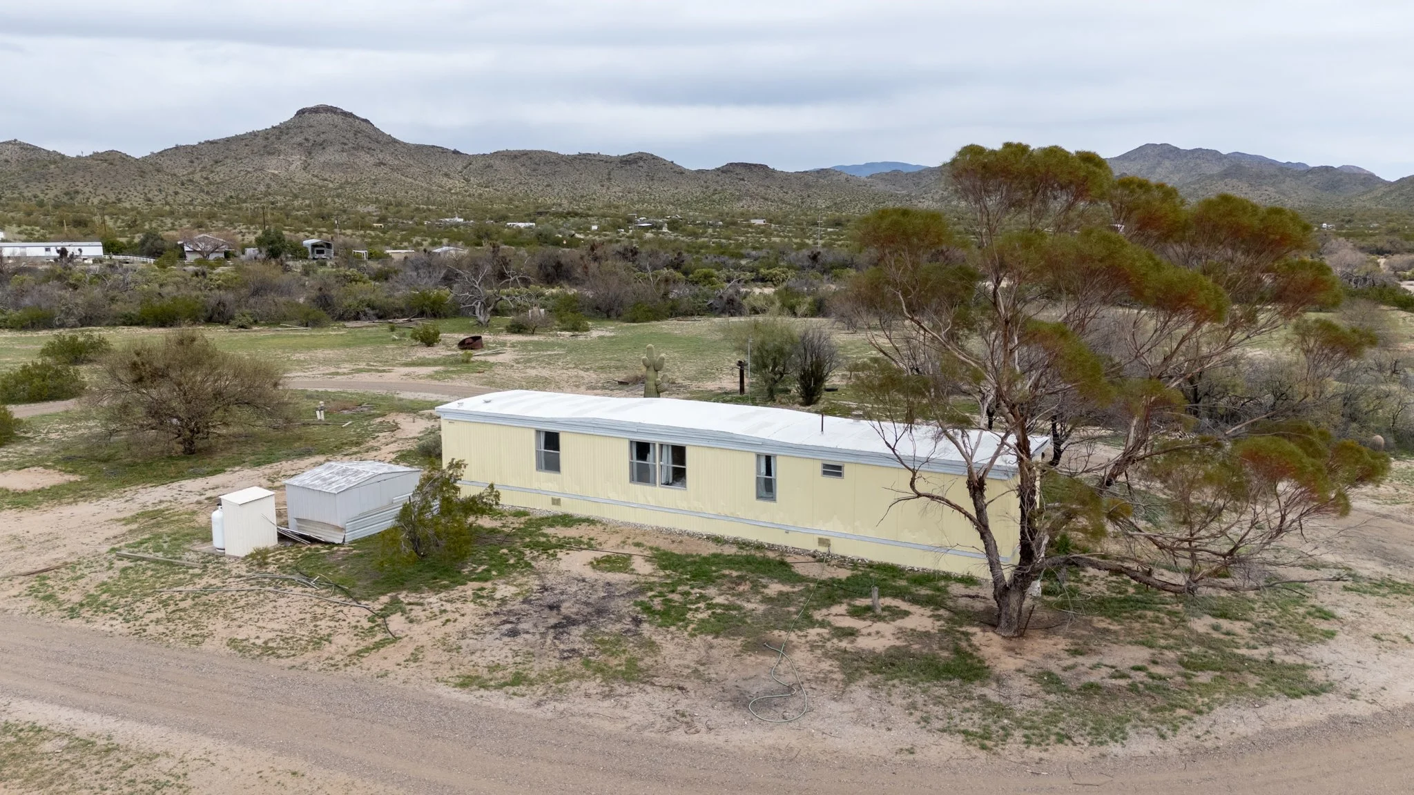 Snowbirds, retirees, and outdoor enthusiasts, I have the perfect winter retreat for you! 17 acres of flat, usable land with wash access in Salome, Arizona. Near miles of trails and public land. Plenty of room for your RV and all your toys! After a long day of off-roading in the desert, relax on your front porch and take in the 360-degree mountain views and beautiful sunsets. Seller financing available! The property is partially fenced with barbed wire and zoning allows for the land to be split into 5-acre parcels. The possibilities are endless! High quality PRIVATE well with new pump. 3 bed, 1 bath manufactured home in great condition! Kitchen with freshly painted cabinets, plenty of cabinet/counter space, refrigerator, microwave, sink, and propane stove. Open concept living area with dining space and tons of windows, allowing for natural light. Master suite with full bathroom, vanity, ample storage space, and washer/dryer hookup. Mature trees, incredible saguaro cactus, deck, and large concrete front porch. Blank slate for your custom home, horse set up, or whatever your heart desires. Wide open spaces and a sense of privacy and serenity you can’t find anywhere else. The best part? You can enjoy this peaceful and quiet lifestyle and never have to shovel an inch of snow! Shopping, dining, and golf nearby. An hour to Wickenburg, Buckeye, and Parker. Come make it your own!