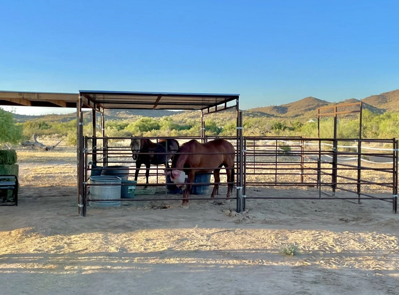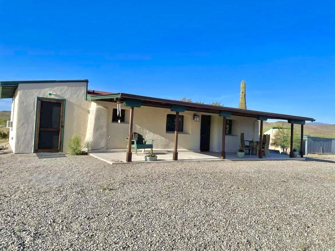 *Seller is motivated! Unique opportunity to own a truly one-of-a-kind horse property you need to see to appreciate! 9.7 fully fenced, usable acres. A new lean-to horse corral was just installed in 2024 with hay storage and (2) 10x20 pipe corrals with shades. Plenty of room for your horses, all your toys, and conveniently located near miles of trails and public land. Large circle drive with (2) 16 foot gates to allow easy access for your RV’s and trailers. RV hookup with water, septic, and both 30 and 50 amp electric. The property also includes a beautifully updated Southwestern style home. Enjoy incredible sunsets/sunrises and 360-degree mountain views from your covered front patio! Exterior updates: brand new stucco and paint, a 9x34 covered front porch with freshly stained wood poles, new roof, and new screen doors. Outdoor entertaining area complete with built-in fire pit, mature shade tree, and saguaro. PRIVATE well fully encased in its own well house! 12x24 enclosed workshop. 25x30 storage area that can be used as hay storage, tack area, or covered parking. The ground is flat, usable, and awaiting your personal touch! Inside you’ll find your tastefully designed retreat including 2 bedrooms, a full bathroom, kitchen, dining area, living area, and indoor laundry room. Tile flooring throughout to keep you cool all summer long. Freshly painted interior and doors. Fully updated kitchen with new cabinetry, countertops, stove, sink overlooking the front porch, and refrigerator. Remodeled full bathroom with new vanity and tiled tub/shower combo. New mini split 2022. Relax after a long day in the desert in your spacious master suite with French doors. The indoor laundry room is huge complete with utility sink, wood plank ceilings, cabinetry, and front porch access. Too many upgrades to list. Shopping, dining, and golf nearby. 1 hour to Wickenburg, Buckeye, and Parker. Come tour the property for yourself!